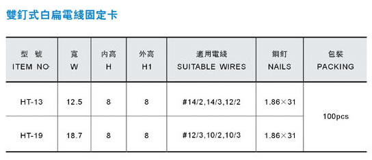 雙釘式白扁電線固定卡